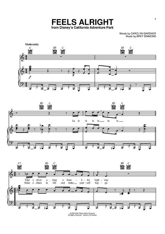 Digital Sheet Music for Feels Alright by Carolyn Dawn Gardner, Bret Simmons scored for Piano/Vocal/Chords; id:371552