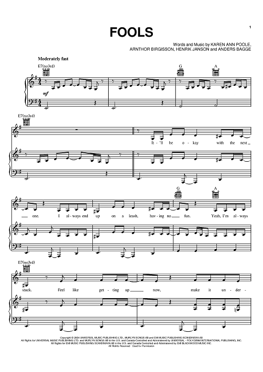 Digital Sheet Music for Fools by Arnthor Birgisson, Anders Bagge, Henrik Janson, Karen Poole, Rachel Stevens scored for Piano/Vocal/Chords; id:379556