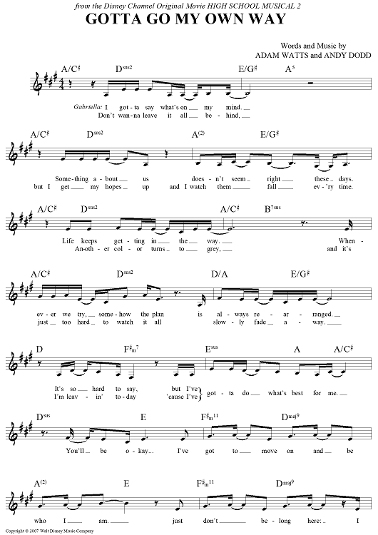Digital Sheet Music for Gotta Go My Own Way by Adam Watts, Andy Dodd scored for Lead Sheet; id:441351