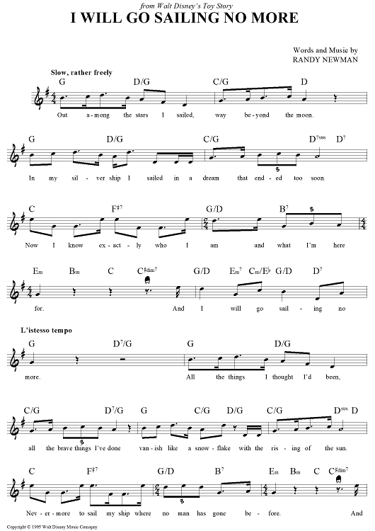 "I Will Go Sailing No More" Sheet Music by Randy Newman
