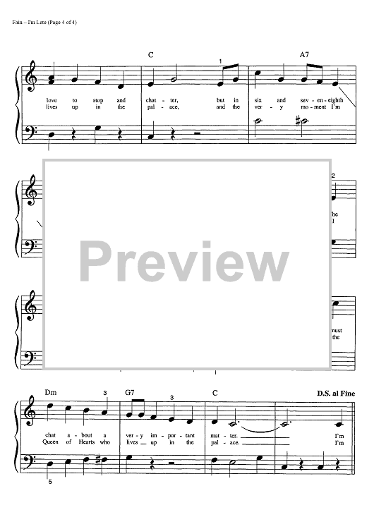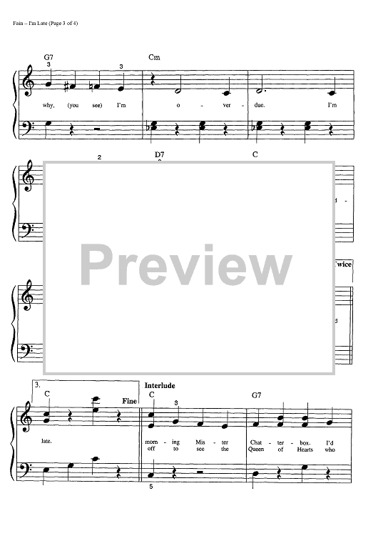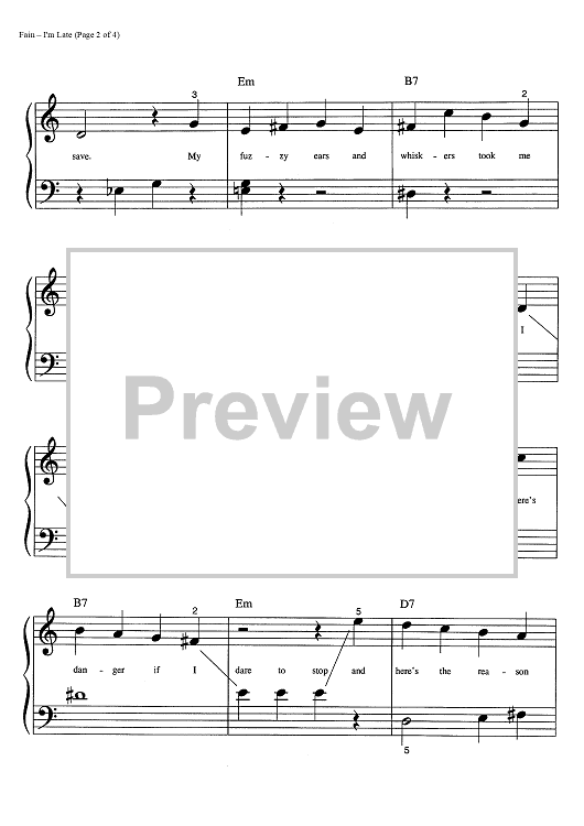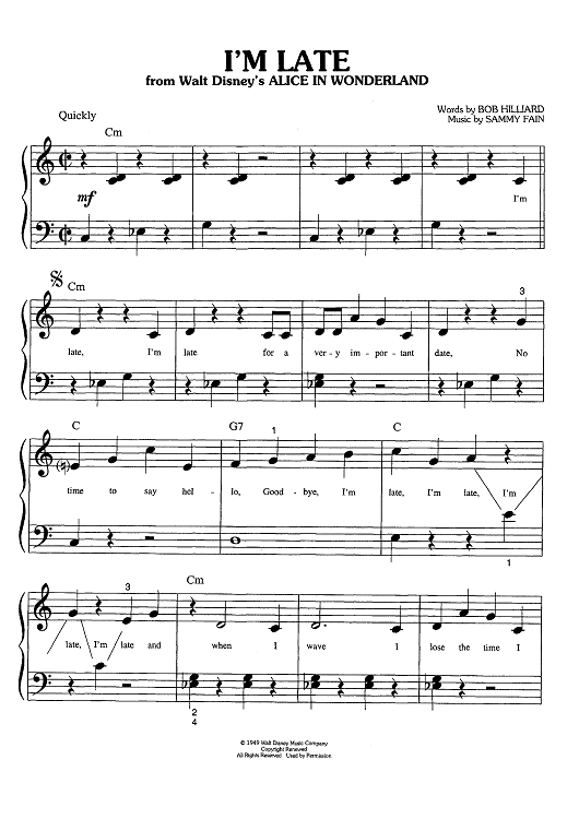Digital Sheet Music for I'm Late by Sammy Fain, Bob Hilliard scored for Big Note Piano; id:445085