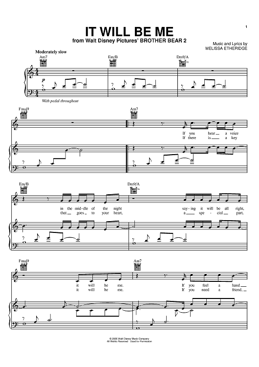 Digital Sheet Music for It Will Be Me by Melissa Etheridge scored for Piano/Vocal/Chords; id:392504