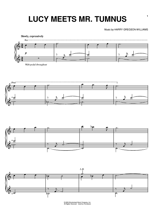 "Lucy Meets Mr. Tumnus" Sheet Music by Harry Gregson-Williams