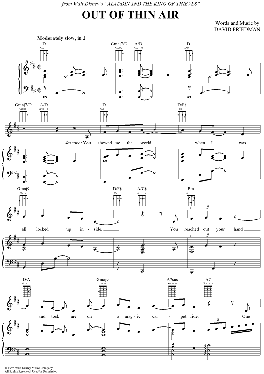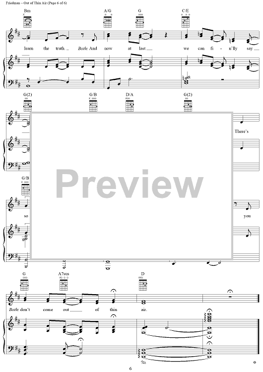 Digital Sheet Music for Out Of Thin Air by David Friedman scored for Piano/Vocal/Chords; id:367607