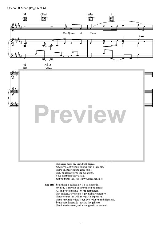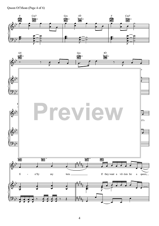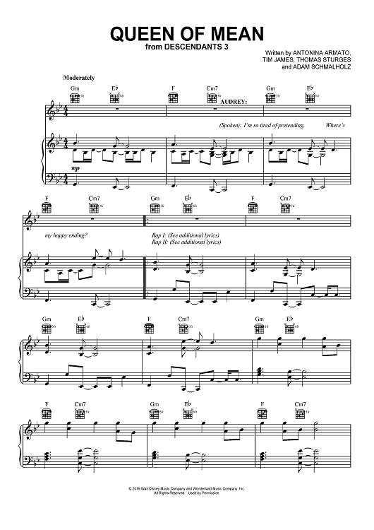 Digital Sheet Music for Queen of Mean - from Descendants 3 by Antonina Armato, Tim James, Thomas Sturges, Adam Schmalholz scored for Piano/Vocal/Chords; id:467821