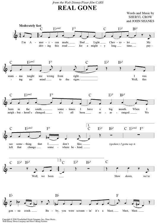 Digital Sheet Music for Real Gone by Sheryl Crow, John Shanks scored for Lead Sheet; id:444196