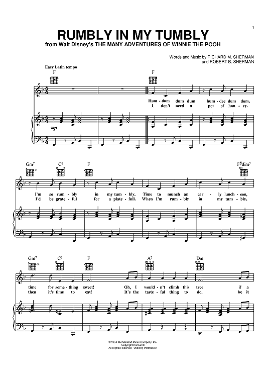 Digital Sheet Music for Rumbly In My Tumbly by Richard M. Sherman, Robert B. Sherman scored for Piano/Vocal/Chords; id:368638