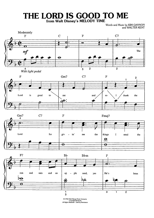 Digital Sheet Music for The Lord Is Good To Me by Walter Kent, Kim Gannon scored for Big Note Piano; id:445122