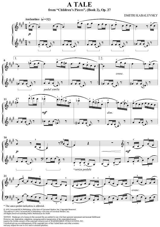 "A Tale" Sheet Music by Dmitri Kabalevsky