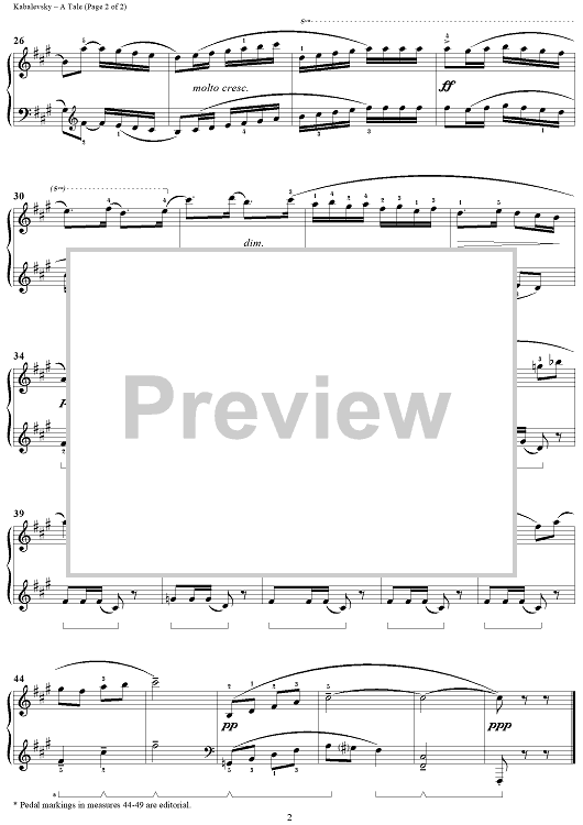 Digital Sheet Music for A Tale by Dmitri Kabalevsky scored for Piano Solo; id:287499