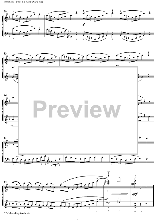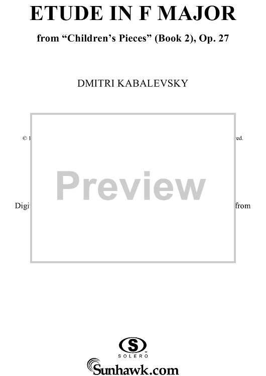 Digital Sheet Music for Etude in F Major by Dmitri Kabalevsky scored for Piano Solo; id:287501