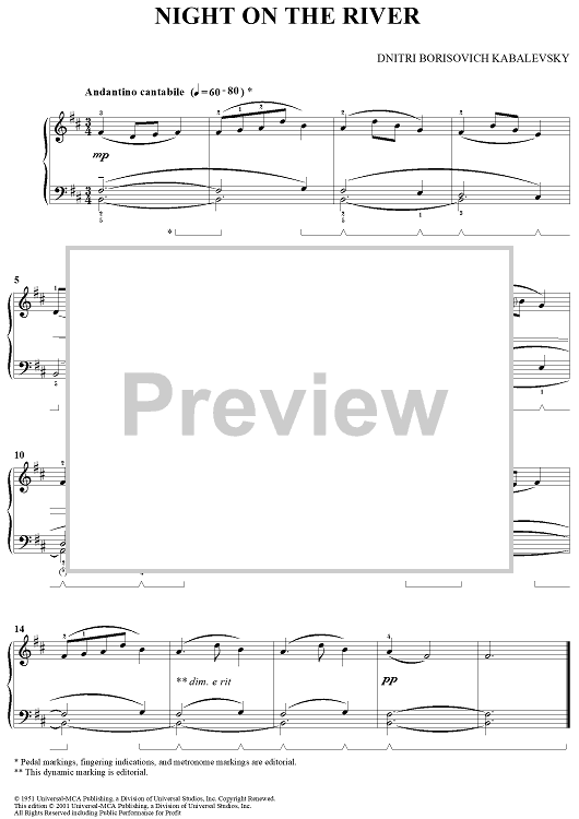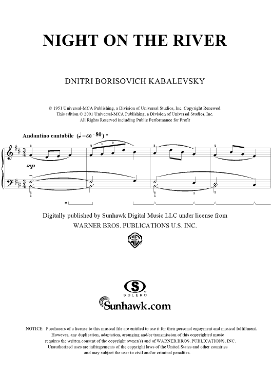 "Night on the River" Sheet Music by Dmitri Kabalevsky
