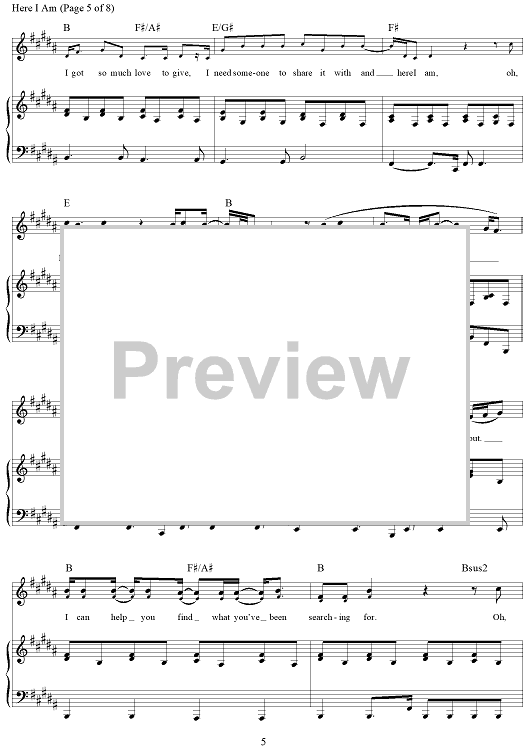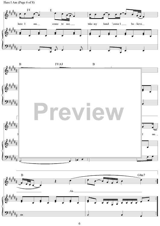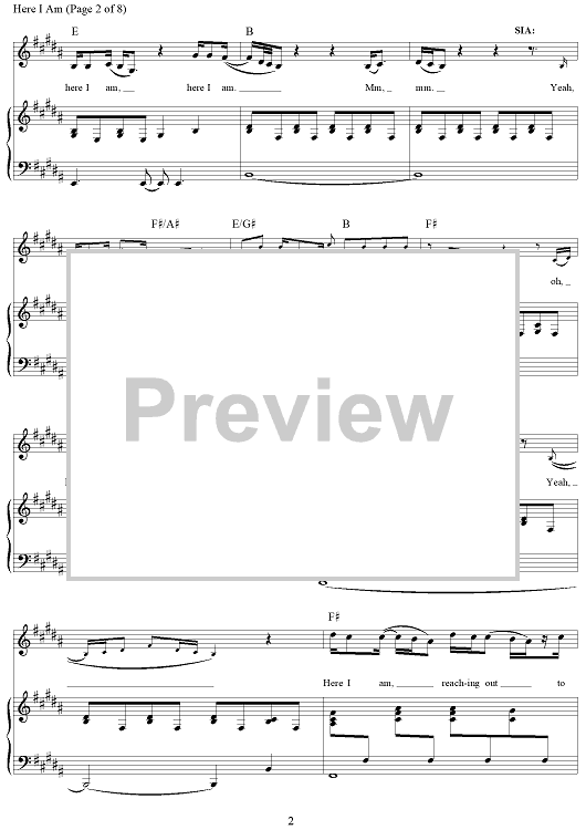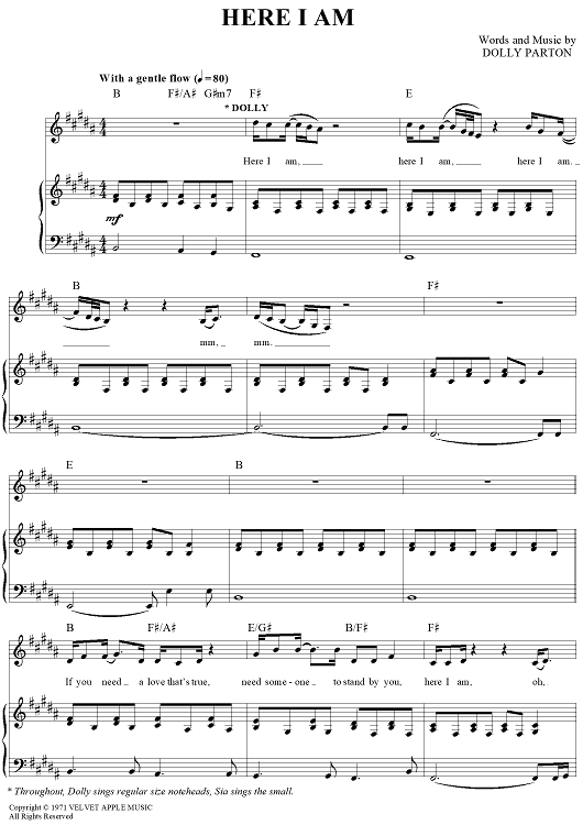 Digital Sheet Music for Here I Am by Sia, Dolly Parton scored for Piano Solo; id:466561