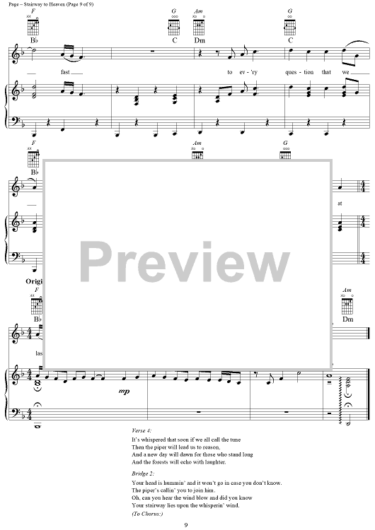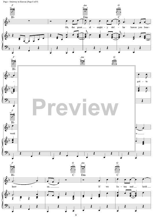 Digital Sheet Music for Stairway to Heaven by Jimmy Page, Led Zeppelin, Robert Plant, Dolly Parton scored for Piano/Vocal/Chords; id:293504