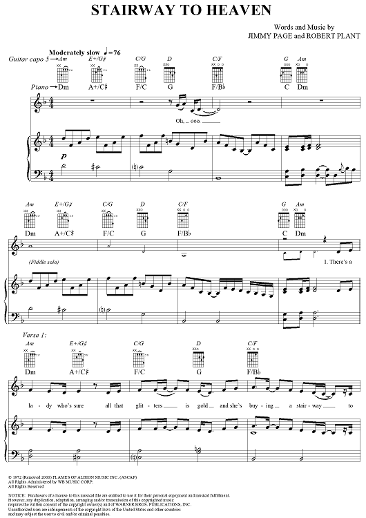 "Stairway to Heaven" Sheet Music by Led Zeppelin