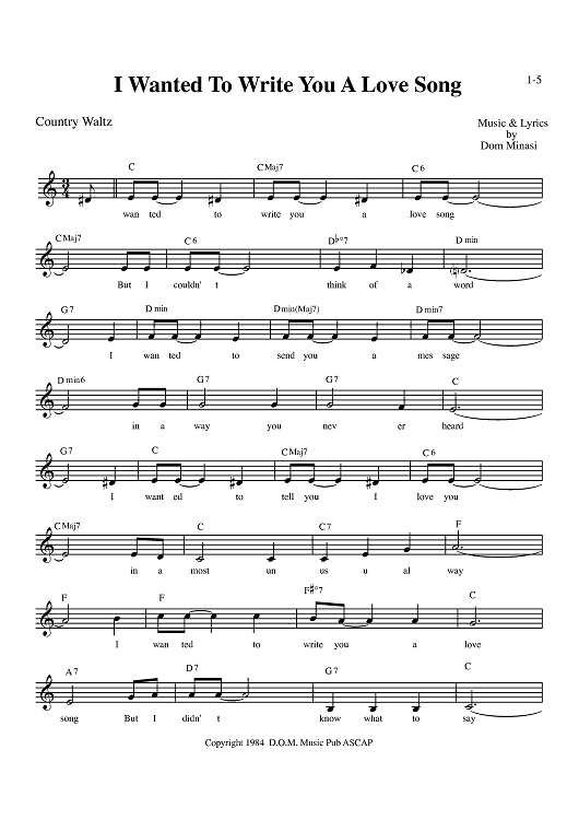 "I Wanted To Write You A Love Song" Sheet Music by Dom Minasi