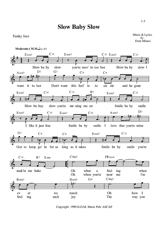 Digital Sheet Music for Slow Baby Slow by Dom Minasi scored for Lead Sheet; id:414792