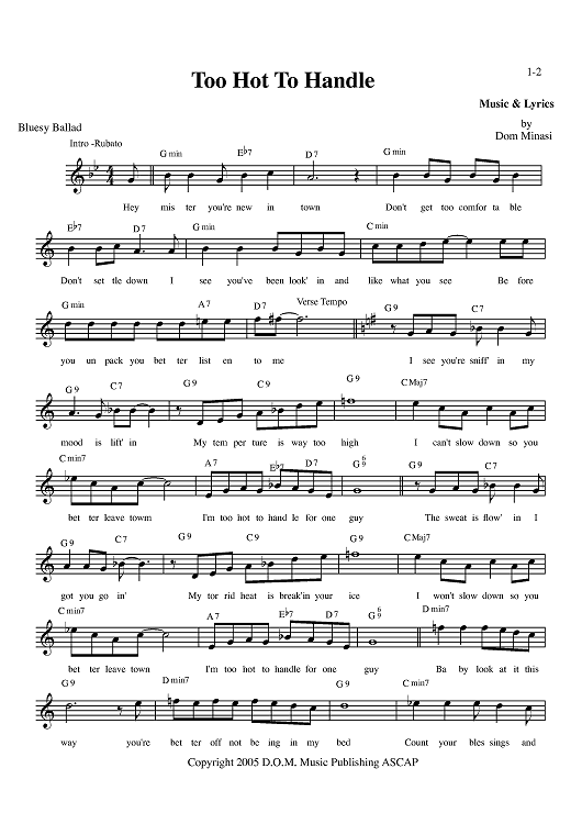 Digital Sheet Music for Too Hot To Handle (Female key) by Dom Minasi scored for Lead Sheet; id:414799