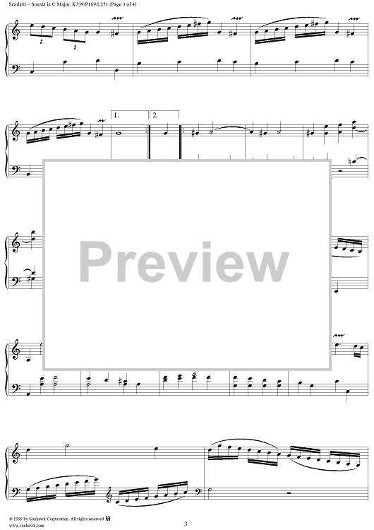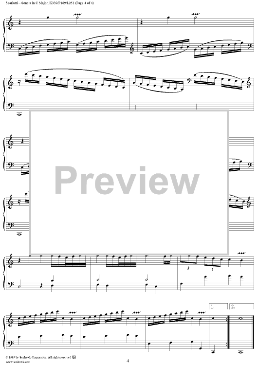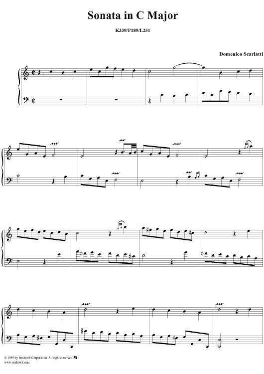 Digital Sheet Music for Sonata in C major, K. 339 by Domenico Scarlatti scored for Piano Solo; id:118161