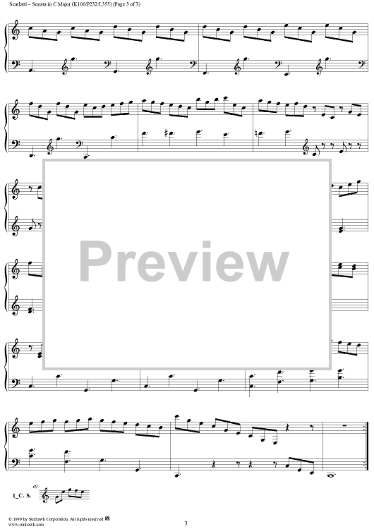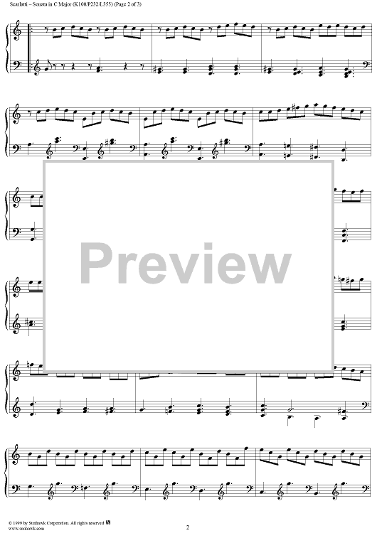 Digital Sheet Music for Sonata in C major (K100/P232/L355) by Domenico Scarlatti scored for Piano Solo; id:257488