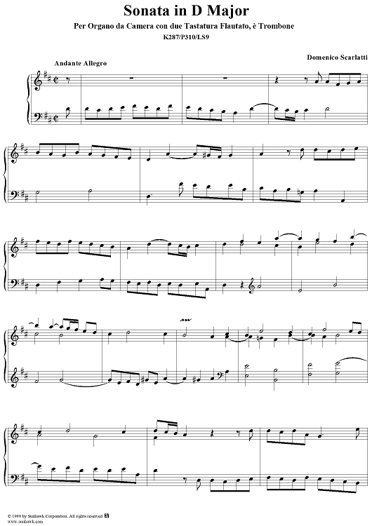 "Sonata in D major, K. 287" Sheet Music by Domenico Scarlatti
