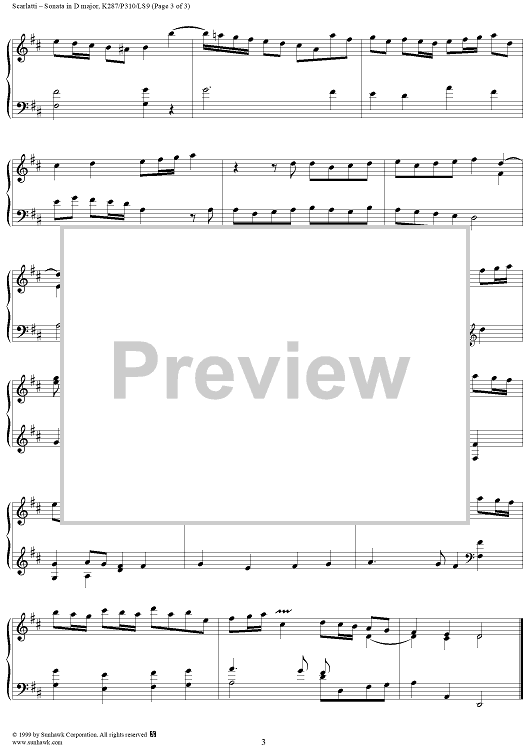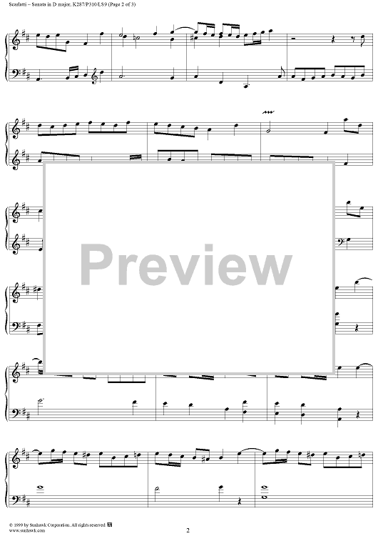 Digital Sheet Music for Sonata in D major, K. 287 by Domenico Scarlatti scored for Piano Solo; id:118158