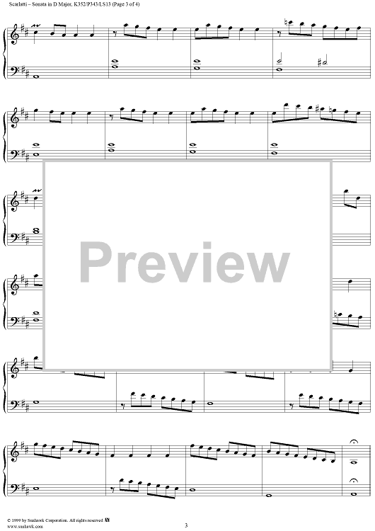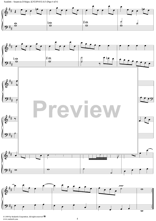 Digital Sheet Music for Sonata in D major, K. 352 by Domenico Scarlatti scored for Piano Solo; id:115169