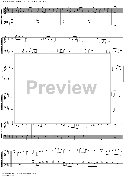 "Sonata in D major, K. 352" Sheet Music by Domenico Scarlatti