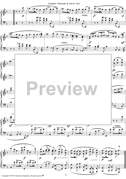Digital Sheet Music for Sonata in F major, K. 446 (Pastorale) by Domenico Scarlatti scored for Piano Solo; id:94457