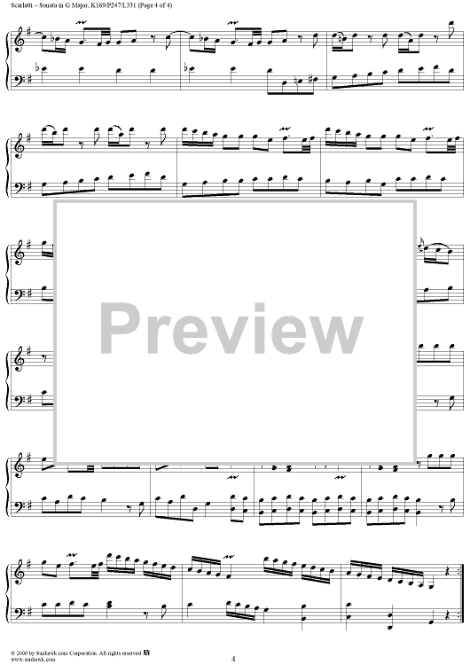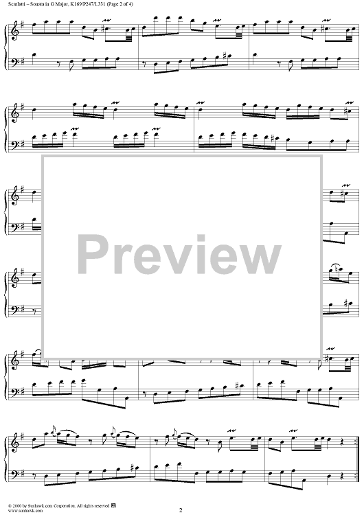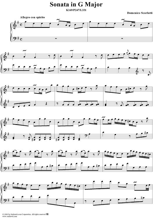 Digital Sheet Music for Sonata in G major, K169 by Domenico Scarlatti scored for Piano Solo; id:203913