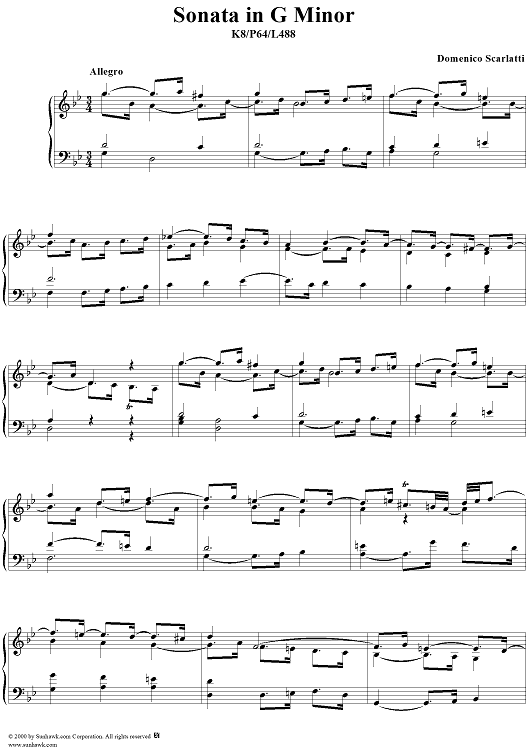 Digital Sheet Music for Sonata in G minor (K8) by Domenico Scarlatti scored for Piano Solo; id:183951