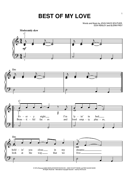 Digital Sheet Music for Best Of My Love by Don Henley, J. D. Souther, Glenn Frey, Eagles scored for Easy Piano; id:384861