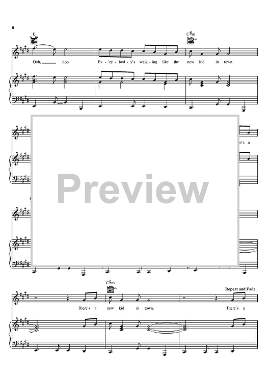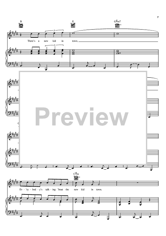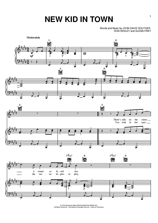 Digital Sheet Music for New Kid In Town by Don Henley, J. D. Souther, Glenn Frey, Eagles scored for Piano/Vocal/Chords; id:394520