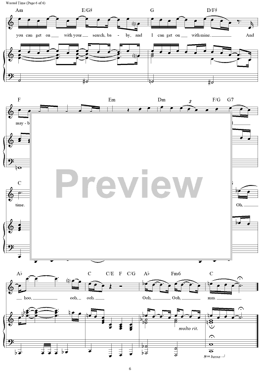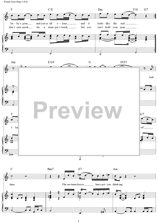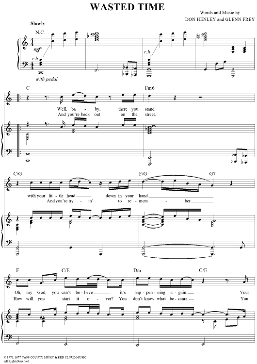 Digital Sheet Music for Wasted Time by Don Henley, Glenn Frey, Eagles scored for Piano/Vocal/Chords; id:112943