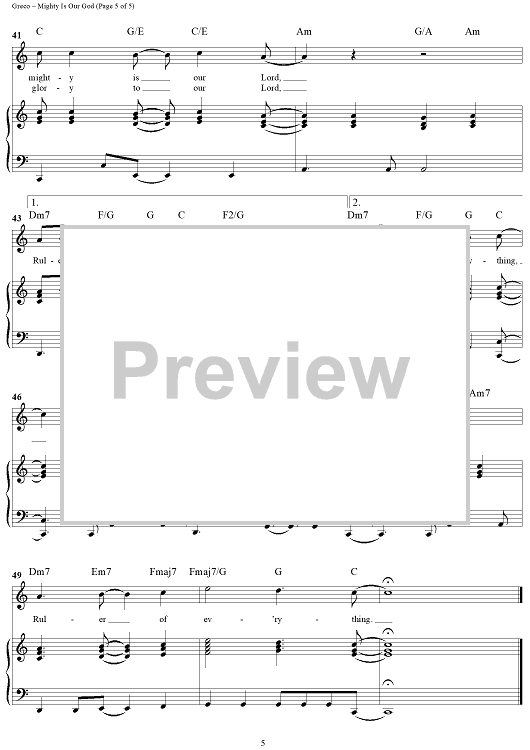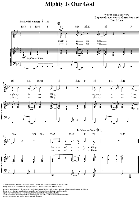 Digital Sheet Music for Mighty Is Our God by Don Moen, Gerrit Gustafson, Eugene Greco scored for Piano/Vocal/Chords; id:308289