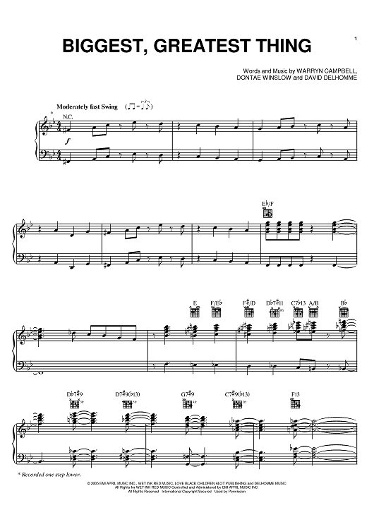 Digital Sheet Music for Biggest, Greatest Thing by Mary Mary, Warryn Campbell, David Delhomme, Dontae Winslow scored for Piano/Vocal/Chords; id:388936