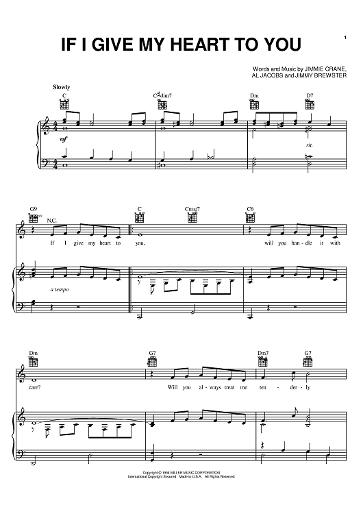 Digital Sheet Music for If I Give My Heart To You by Doris Day, Jimmy Brewster, Al Jacobs scored for Piano/Vocal/Chords; id:374397