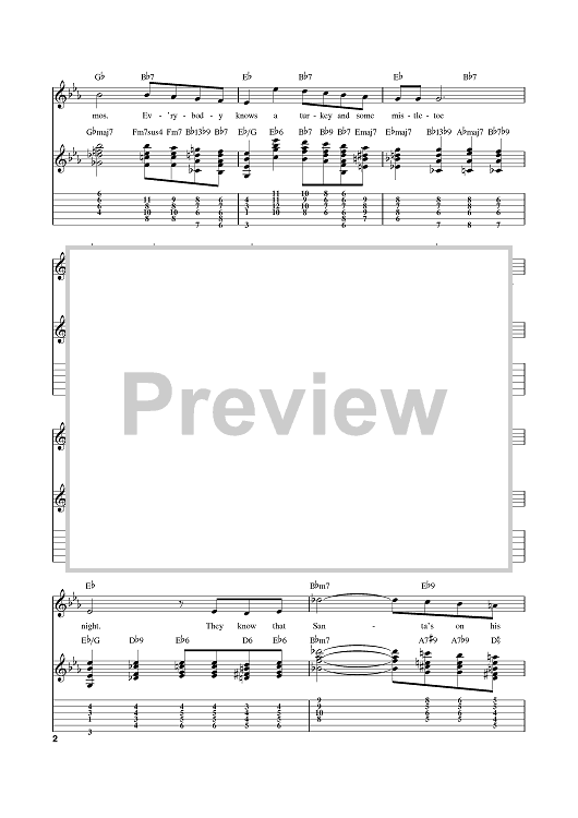 Digital Sheet Music for The Christmas Song (Chestnuts Roasting On An Open Fire) by Nat King Cole, Doris Day, Mel Torme, Robert Wells scored for Easy Guitar Tab; id:375116