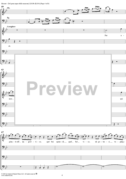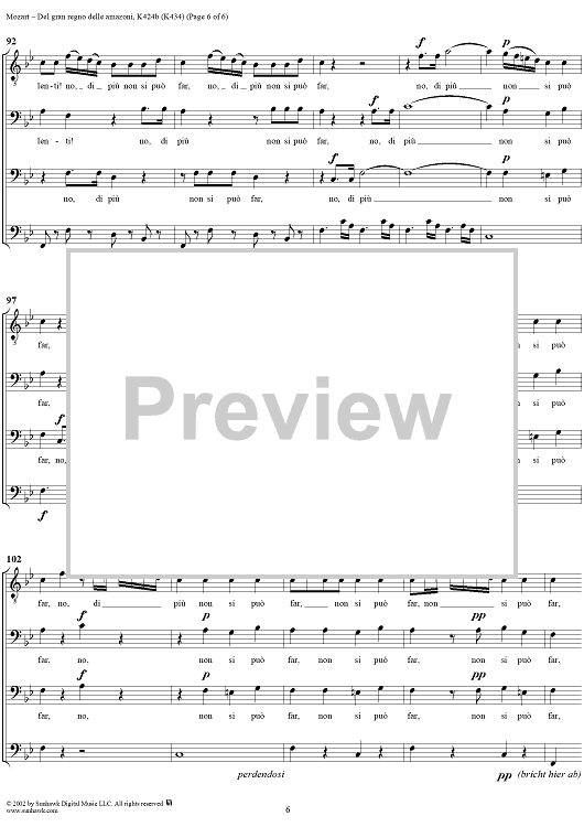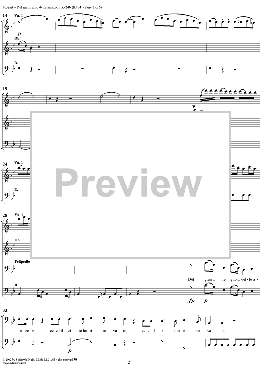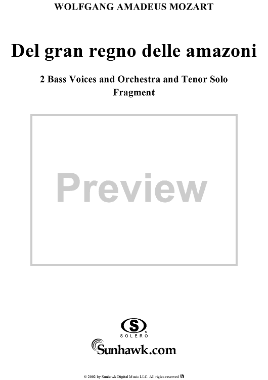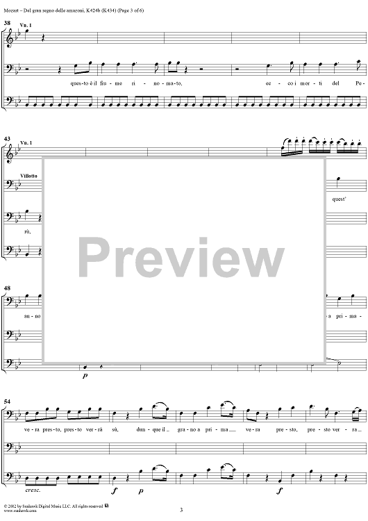 Digital Sheet Music for Terzett for Tenor, Two Basses and Orchestra: "Del gran regno delle amazoni", K. 434(K. 424b) - Full Score by Wolfgang Amadeus Mozart scored for Tenor/Two Basses/Orchestra; id:242030