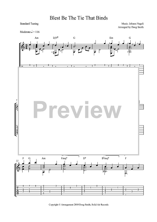 Digital Sheet Music for Blest Be The Tie That Binds (No MP3) by Johann Nägeli, Doug Smith scored for Guitar Tab; id:451863