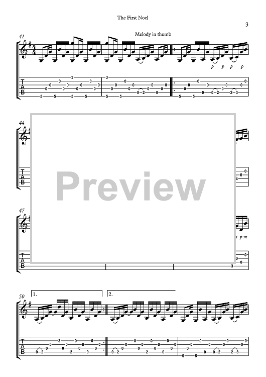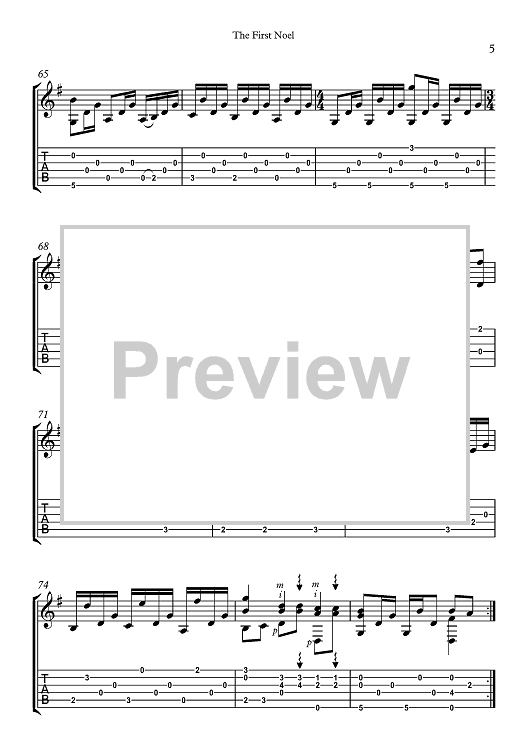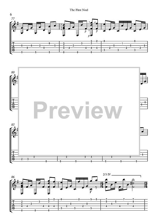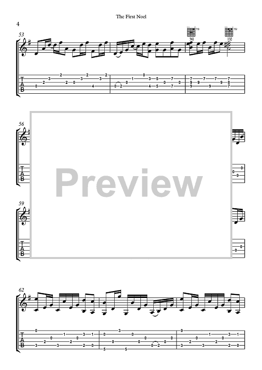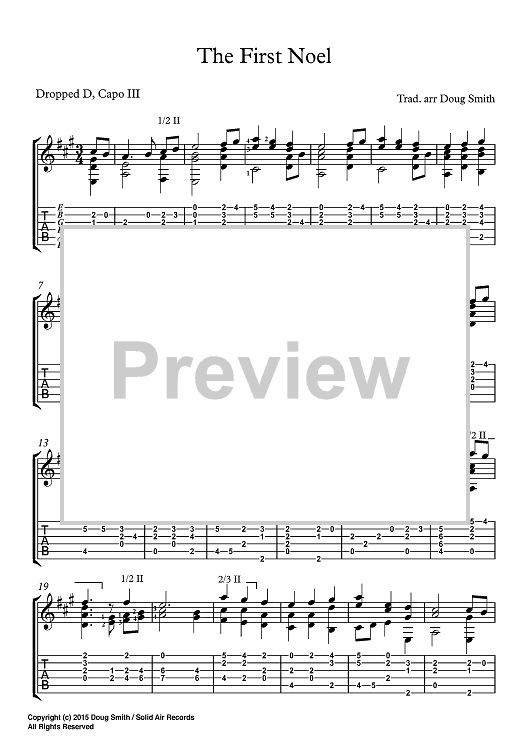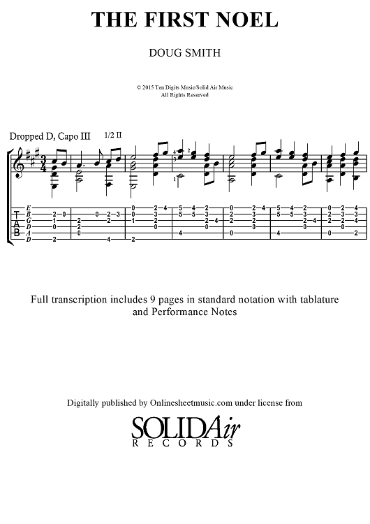Digital Sheet Music for The First Noel by Traditional Carols, Doug Smith scored for Guitar Tab; id:455515