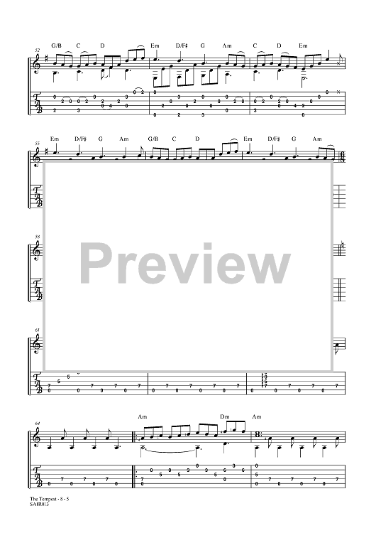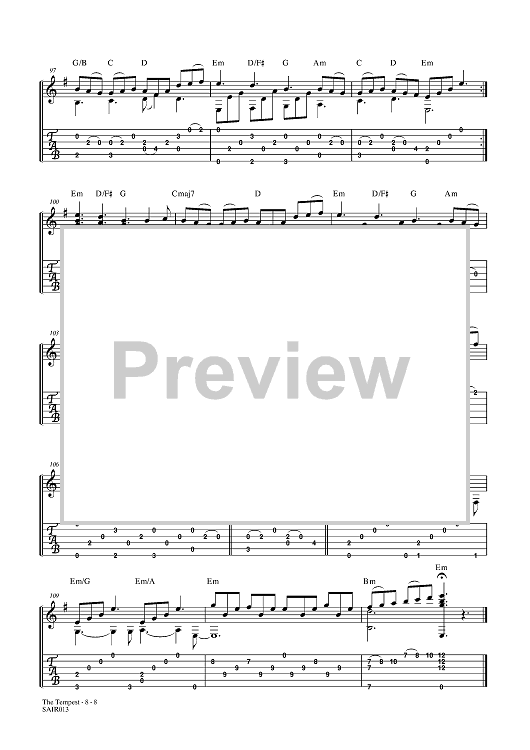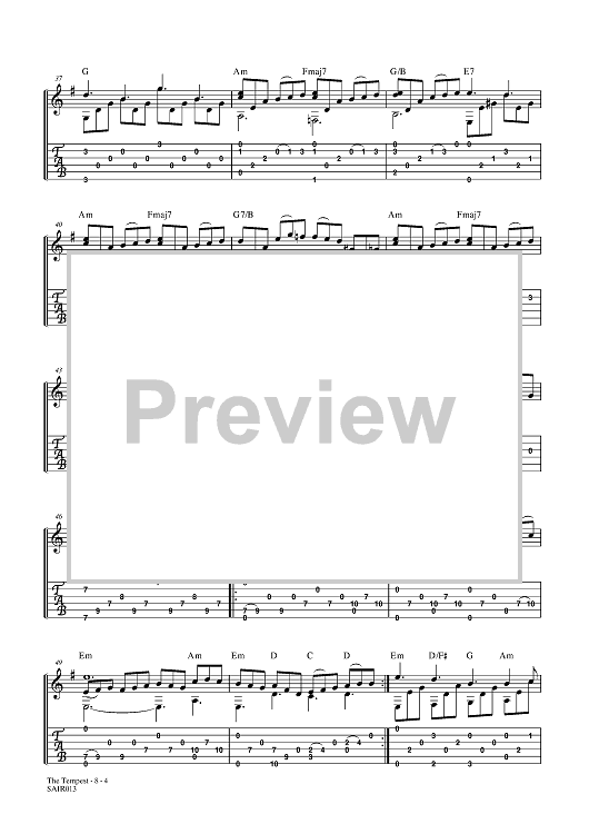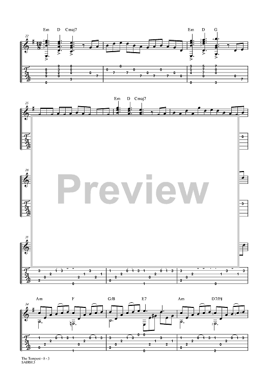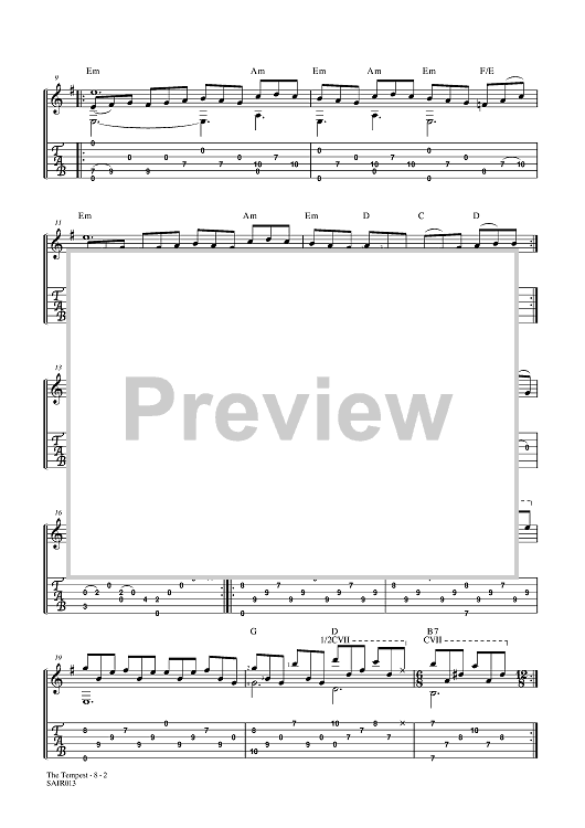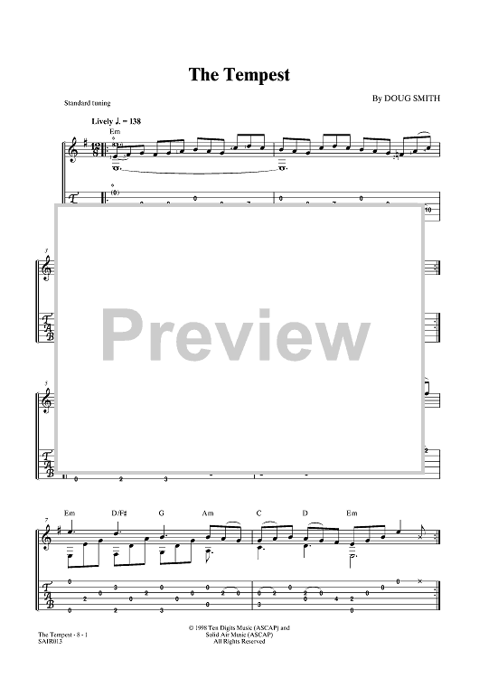 Digital Sheet Music for The Tempest (No MP3) by , Doug Smith scored for Guitar Tab; id:451821