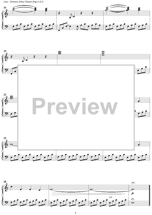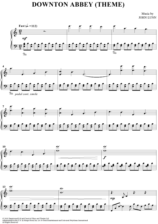 Digital Sheet Music for Downton Abbey by John Lunn scored for Piano Solo; id:429465
