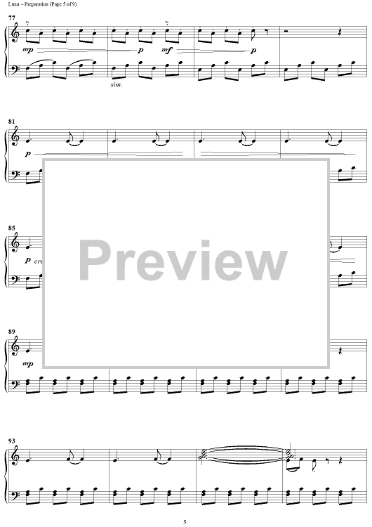 Digital Sheet Music for Preparation by John Lunn scored for Piano Solo; id:450251