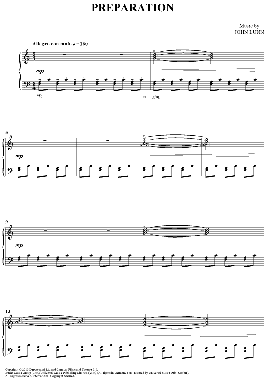 "Preparation" Sheet Music by John Lunn