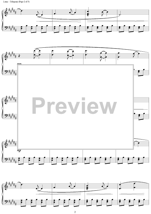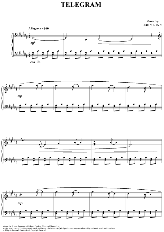 Digital Sheet Music for Telegram by John Lunn scored for Piano Solo; id:449250
