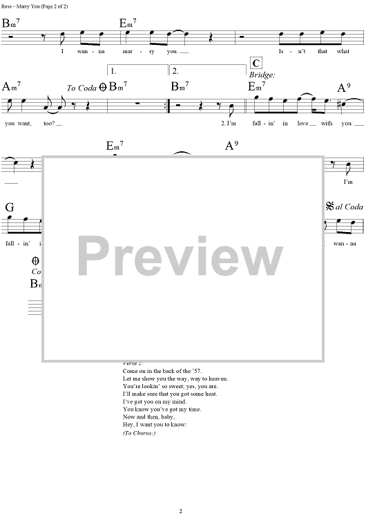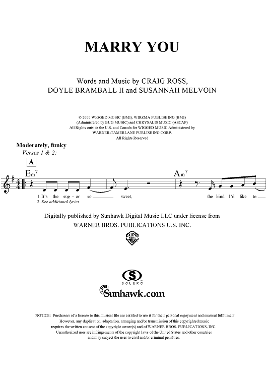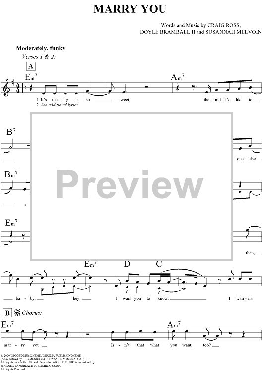 Digital Sheet Music for Marry You by Susannah Melvoin, Craig Ross, Doyle Bramball II scored for Lead Sheet; id:291495
