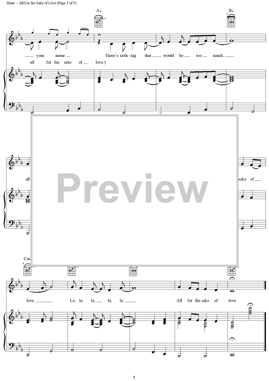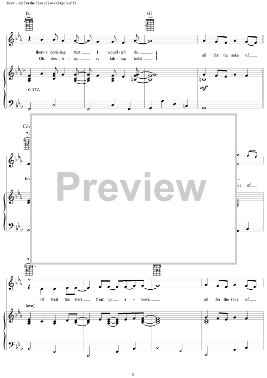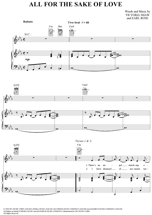 Digital Sheet Music for All For the Sake of Love by Victoria Shaw, Earl Rose scored for Piano/Vocal/Chords; id:235831