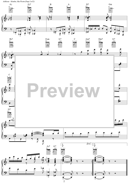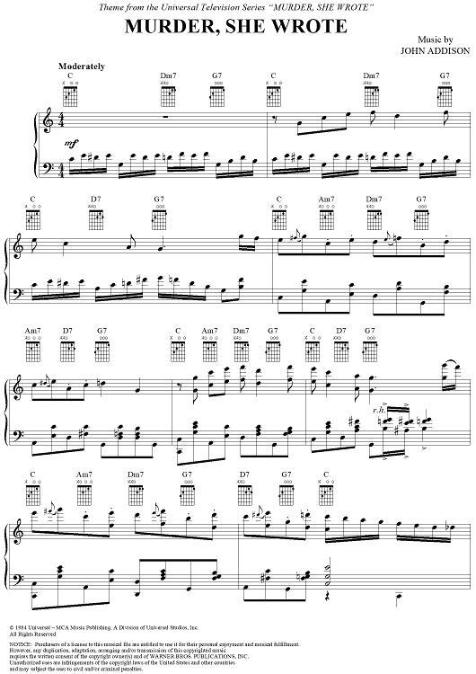 Digital Sheet Music for Murder, She Wrote by John Addison scored for Piano Solo; id:288958