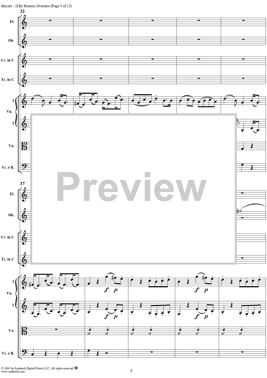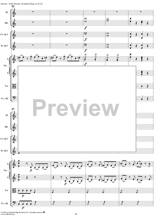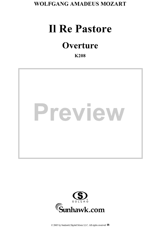 Digital Sheet Music for Overture from "Il Re Pastore" (K208) - Full Score by Wolfgang Amadeus Mozart scored for Orchestra; id:262760